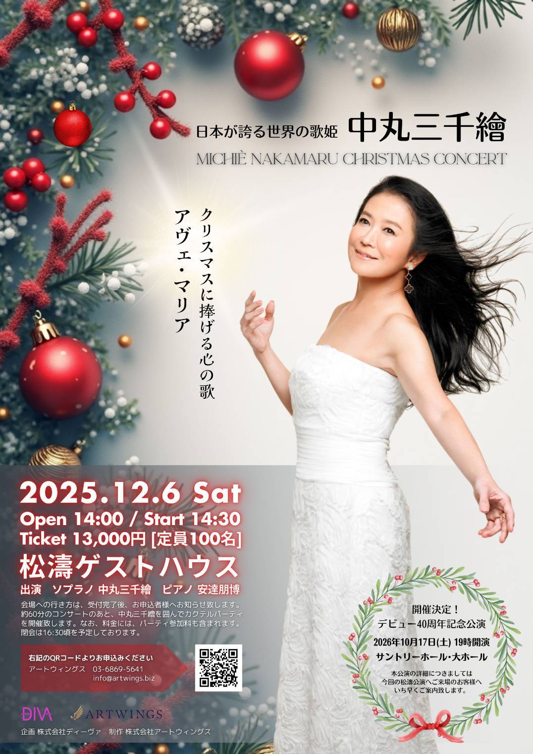 2025年12月6日(土) 「DIVA Presents 中丸三千繪 CHISTMAS CONCERT」の開催が決定!